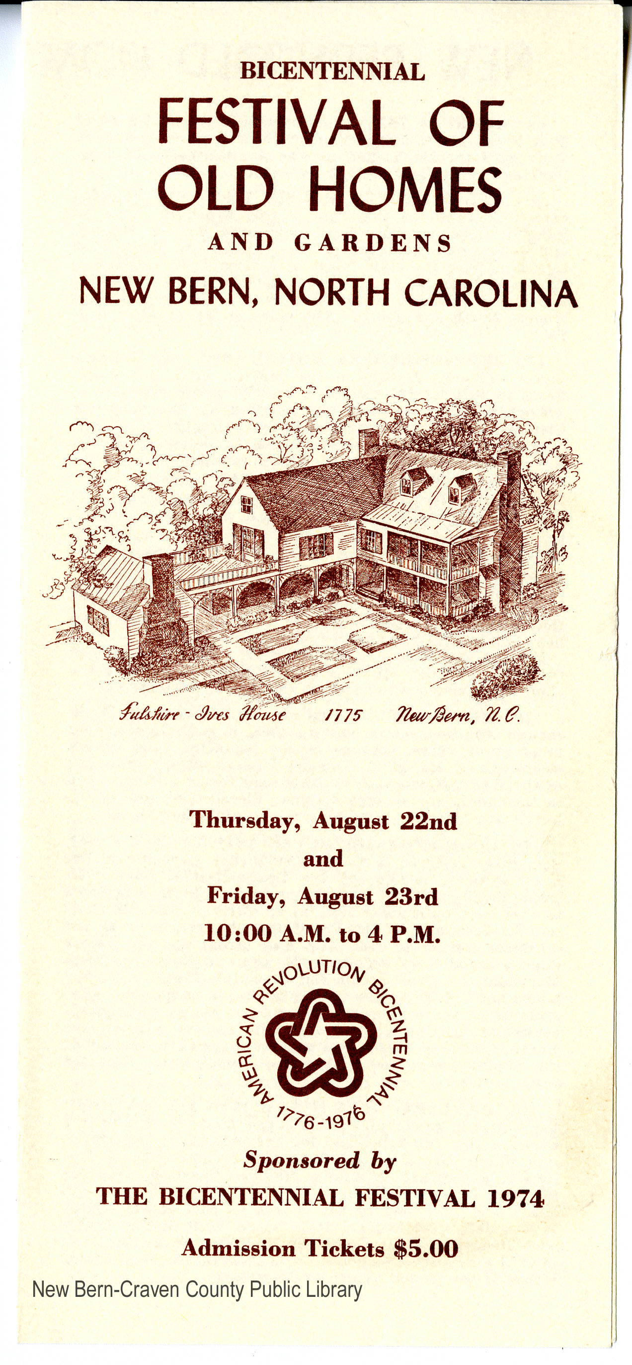 Tryon Palace Restoration, “1974 New Bern Old Homes and Gardens Tour Bicentennial Program,” Craven County Digital History, accessed January 14, 2026, https://kellenberger.mycprl.org/digital/items/show/1440.