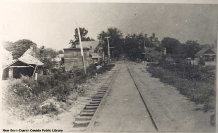 Description: 100 block of Hancock Street looking north from the Trent River Railroad Bridge.