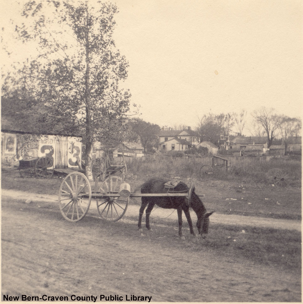 Valentine, Herbert E. (Herbert Eugene), 1841- and Bowden, William Scobie, d. 1908, “Mule cart, location unknown,” Craven County Digital History, accessed February 26, 2026, https://www.kellenberger.mycprl.org/digital/items/show/384.