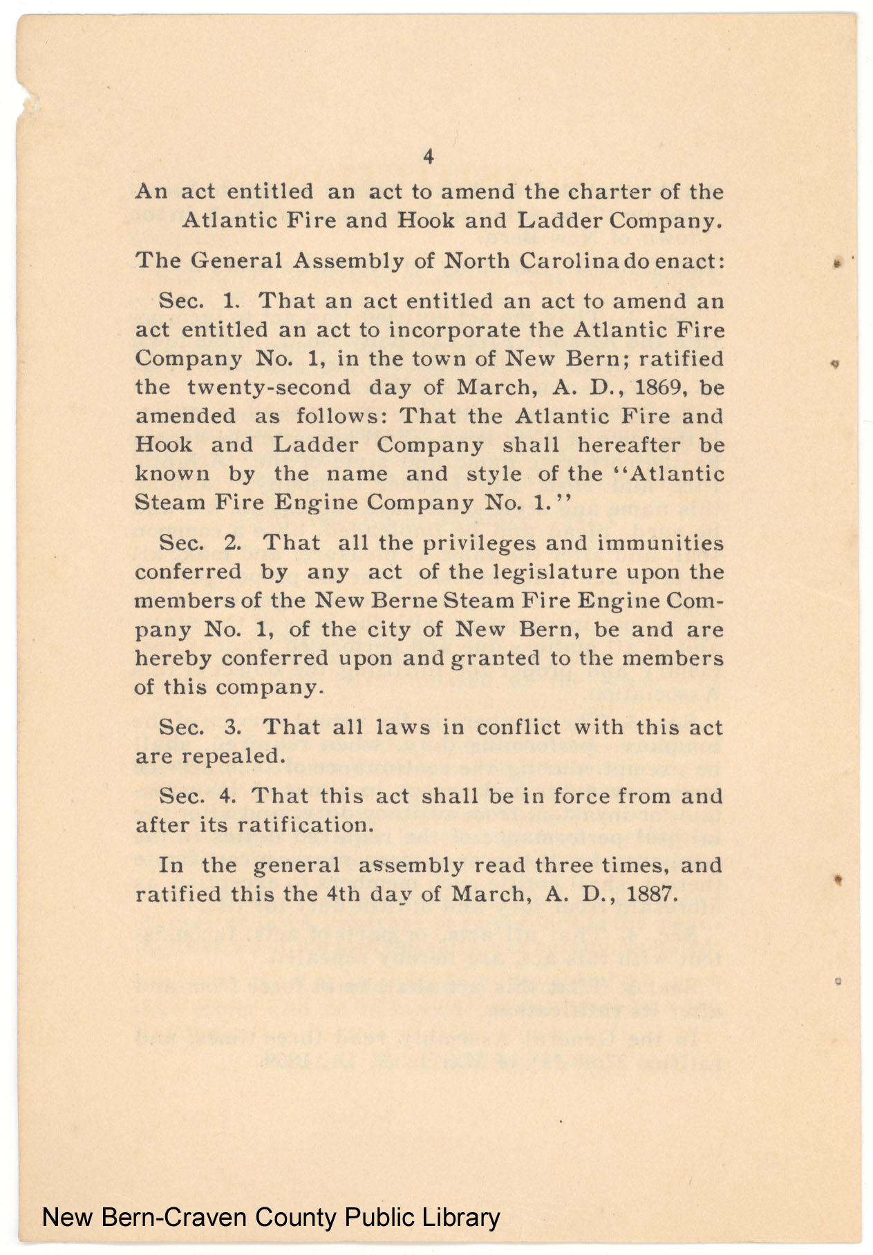 Charter and Constitution and By-Laws of the Atlantic Steam Fire Engine Co., Page 4