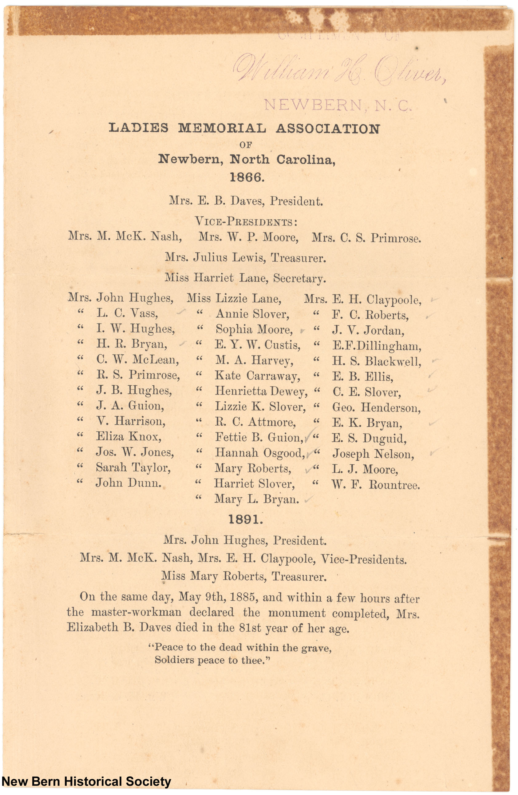 the New Bern Historical Society, 512 Pollock Street, New Bern, NC 28560.