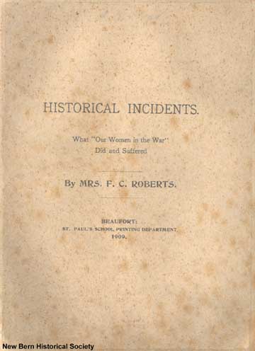 HISTORICAL, INCIDENTS. What "Our Women in the War" By MRS. F. C. ROBERTS. BEAUFORT: ST. PAUL'S SCHOOL PRINTING DEPARTMENT. 1909.