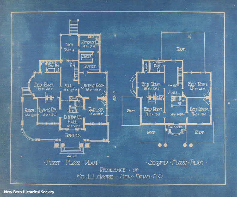 Description: First and second floor plans for the residence of L.I. Moore in New Bern, N.C..