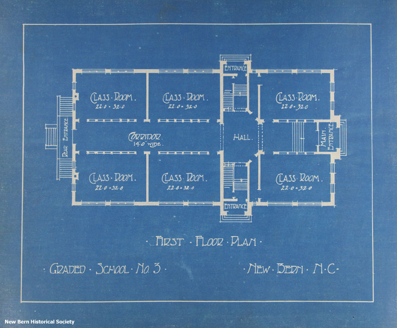 Description: Plans for the first floor of New Bern Graded School No. 3.