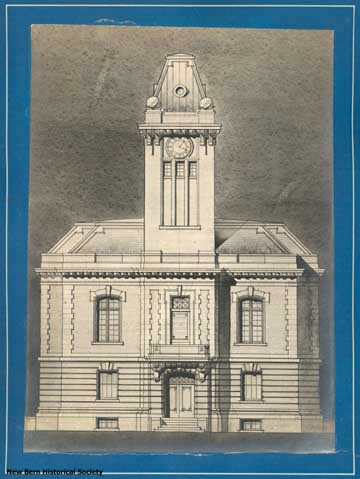 Description: Front view of drawing of a Court House, possibly for Goldsboro, NC.
