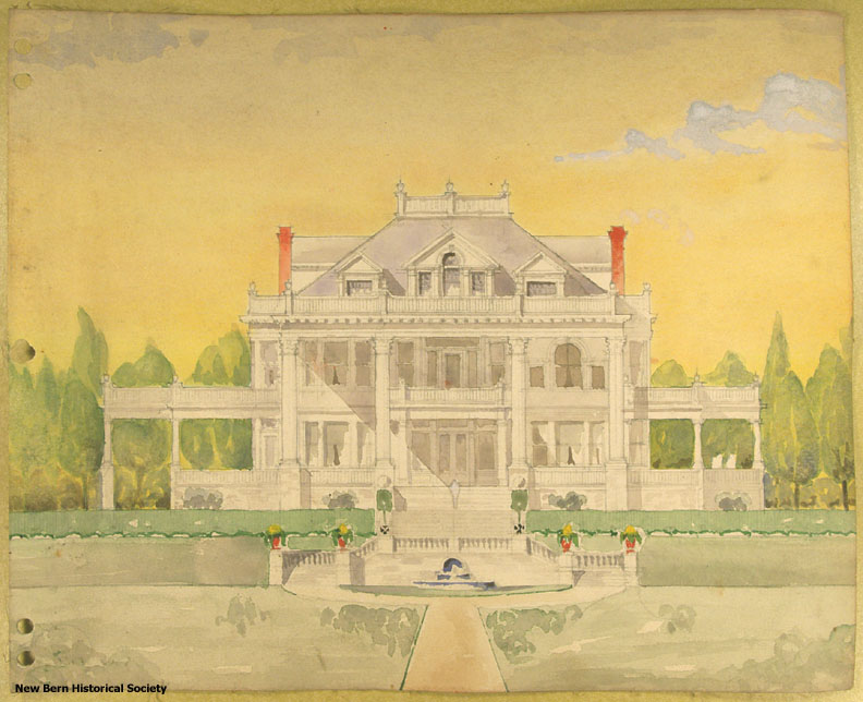 Description: Watercolor drawing of the residence of Mr. J.B. Blades of New Bern, N.C.
