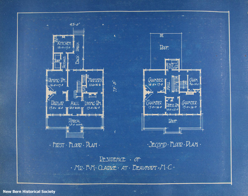 Description: Floor plans for the residence of Mr. F.M. Clarke of Beaufort, N.C.