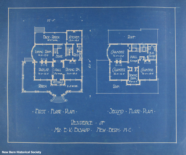 Description: Floor plans for the residence of Mr. E.K. Bishop of New Bern, N.C.