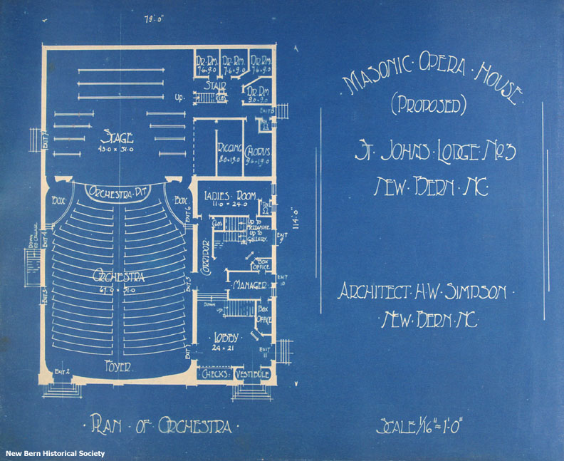 Title: Plans, Masonic Opera House (Proposed), St. John's Lodge, New Bern, N.C.
