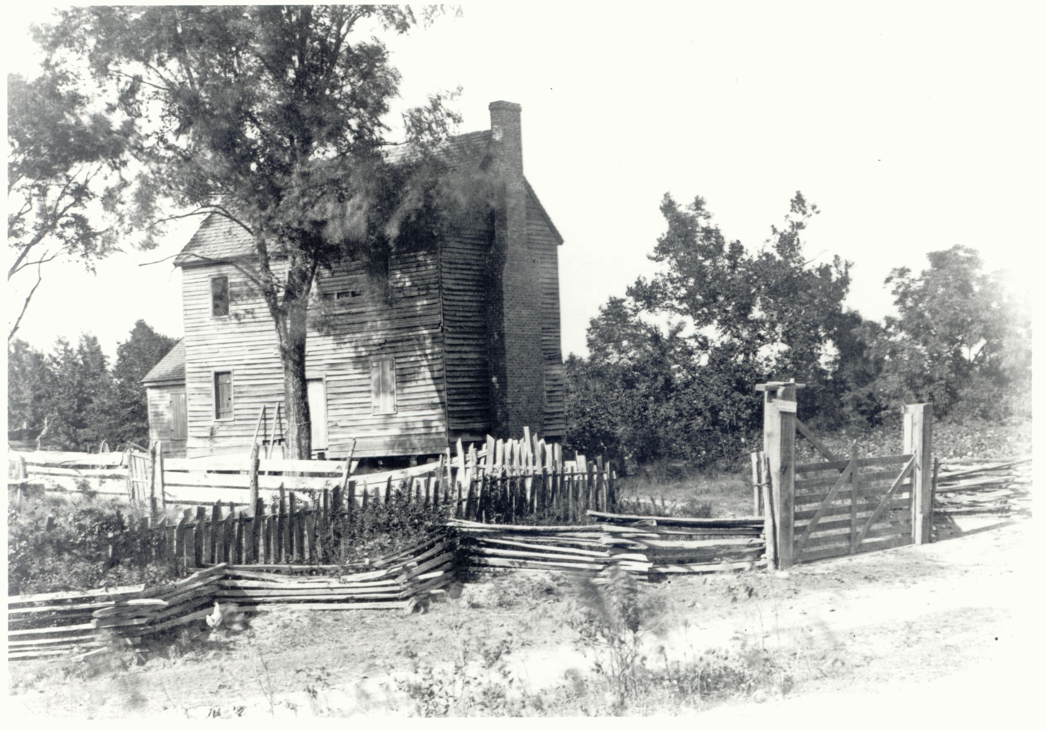 Description: Image showing a two-storied house near Kinston, North Carolina. Reed further describes the photograph as follows: "Old House, near Kinston Bridge.--Used as a field hospital at the battle of Kinston, Dec. 14, 1862. Under the trees to the right were buried the amputations. The front of the house is full of bullet holes."