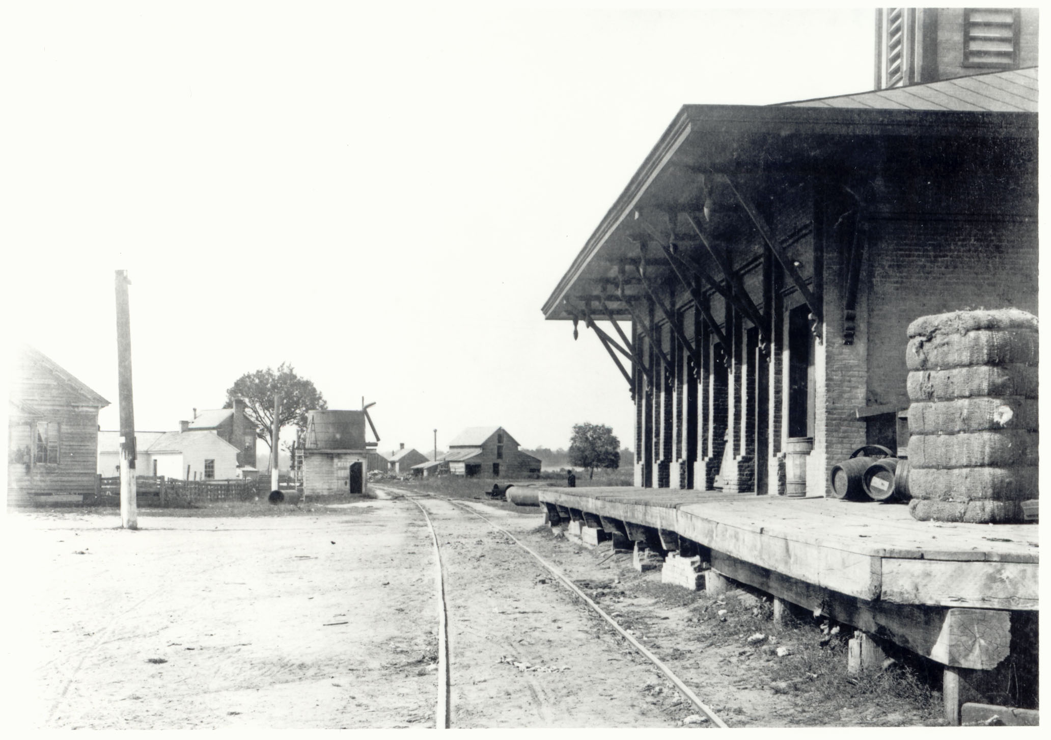 Description: Image depicts the Kinston, North Carolina, railroad depot. Reed further describes the photograph as: "Railroad Station at Kinston.--The regiment encamped on the portion of the track shown, on the night of Dec. 14, 1862."