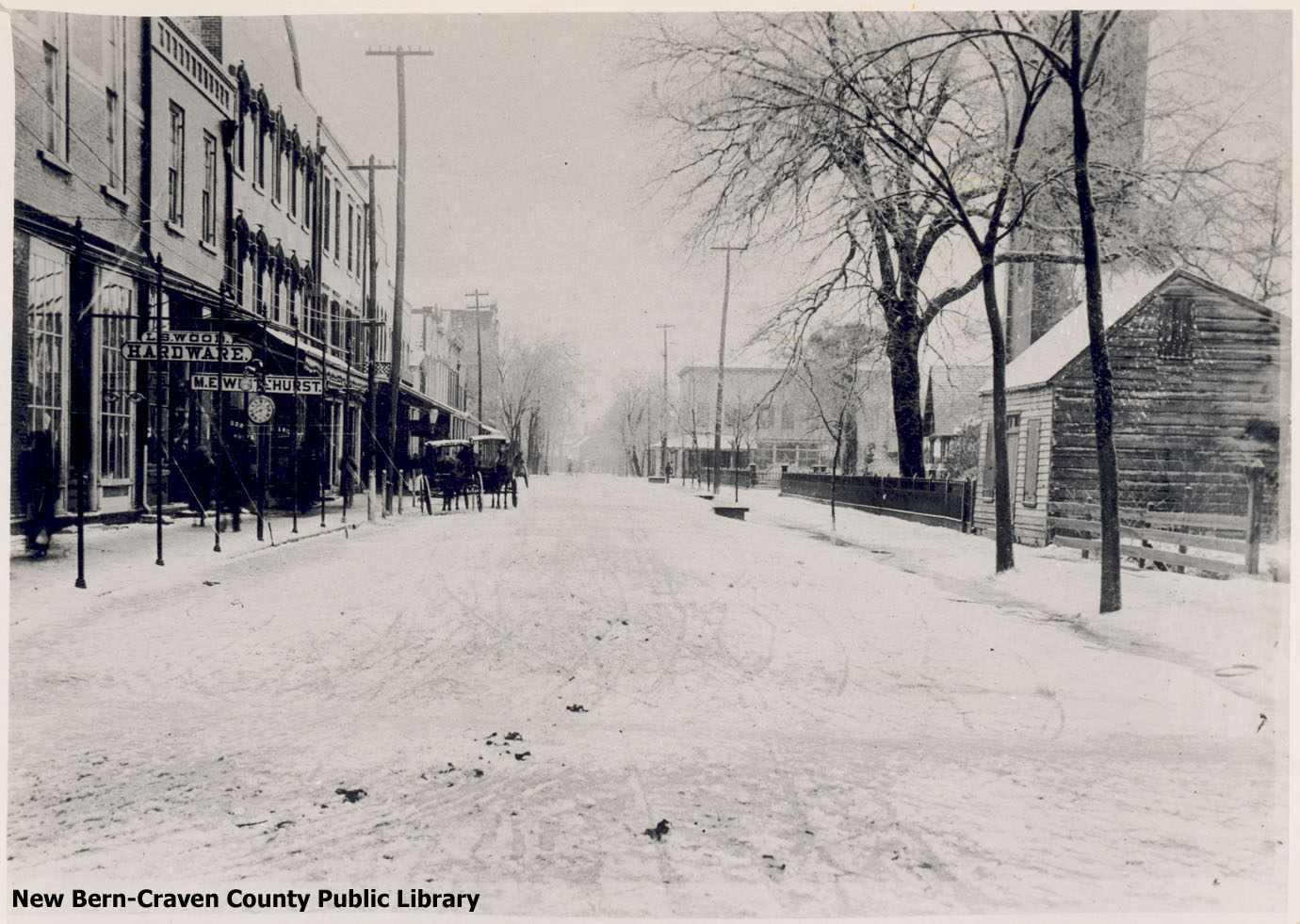 Description: 300 block of Pollock Street looking west from Craven Street following a snow storm.